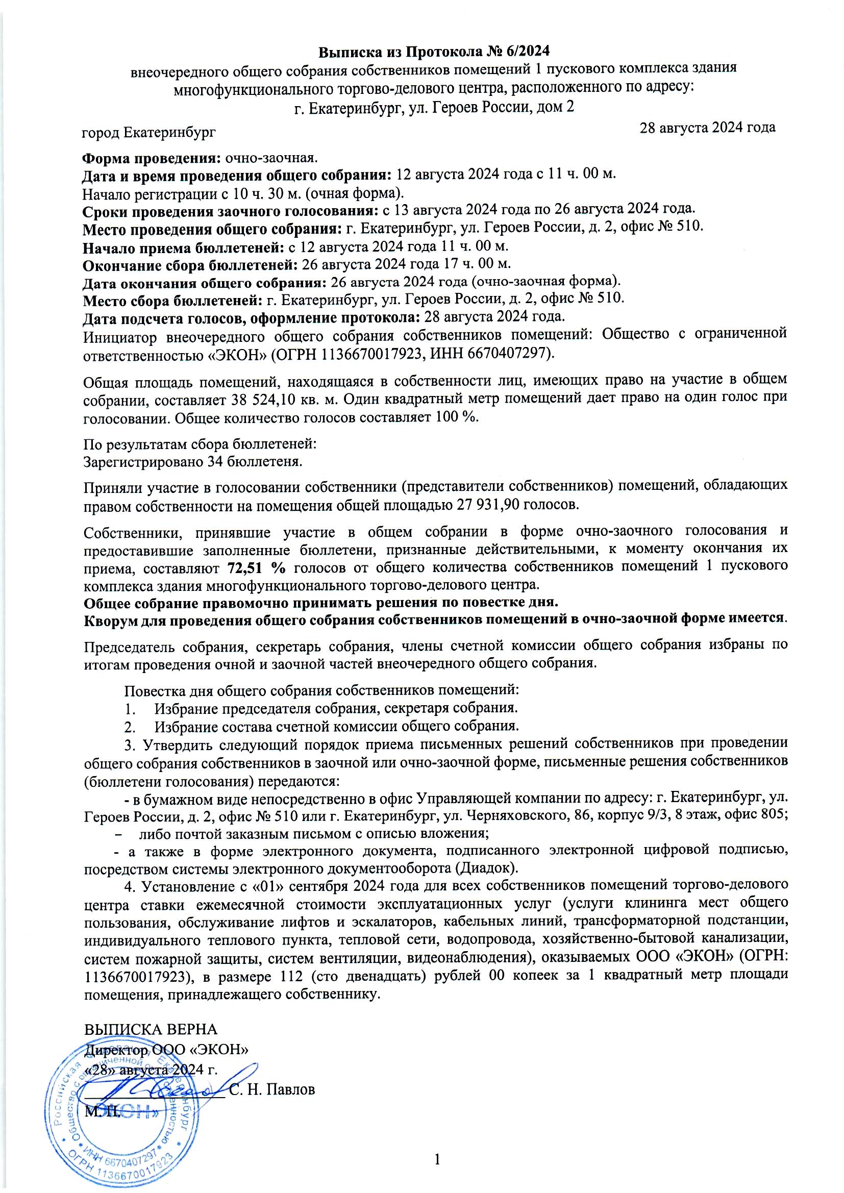 Проведено внеочередное общее собрание собственников помещений 1 пускового комплекса здания многофункционального торгово-делового центра, расположенного по адресу: г. Екатеринбург, ул. Героев России, дом 2.